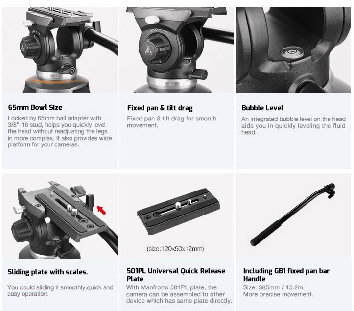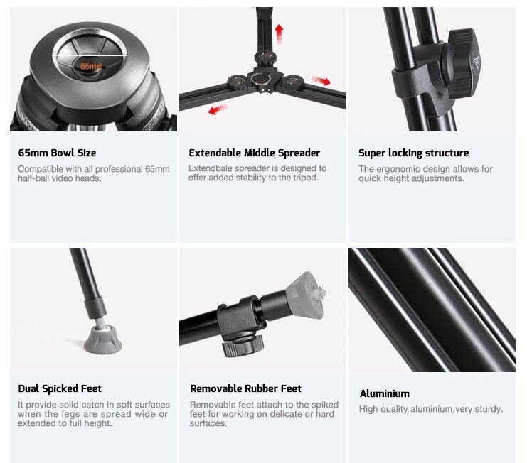 Штатив E-Image EK610 для видеокамер с головой