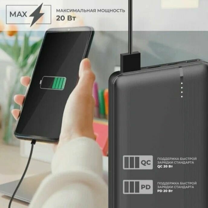 | Особенности | зарядка двух устройств / индикатор заряда / Быстрая зарядка Power Delivery / Быстрая зарядка Quick Charge / Дисплей |
