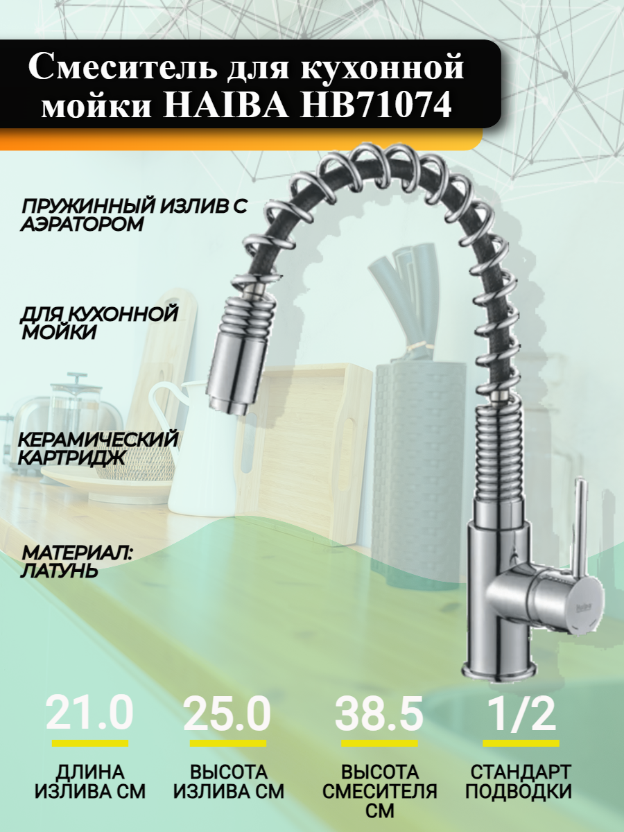 СохранитьСмеситель HB074 д/кухн 1-ручк, латунь, гибкий излив, хром, Haiba(Китай), арт HB71074 интересное: