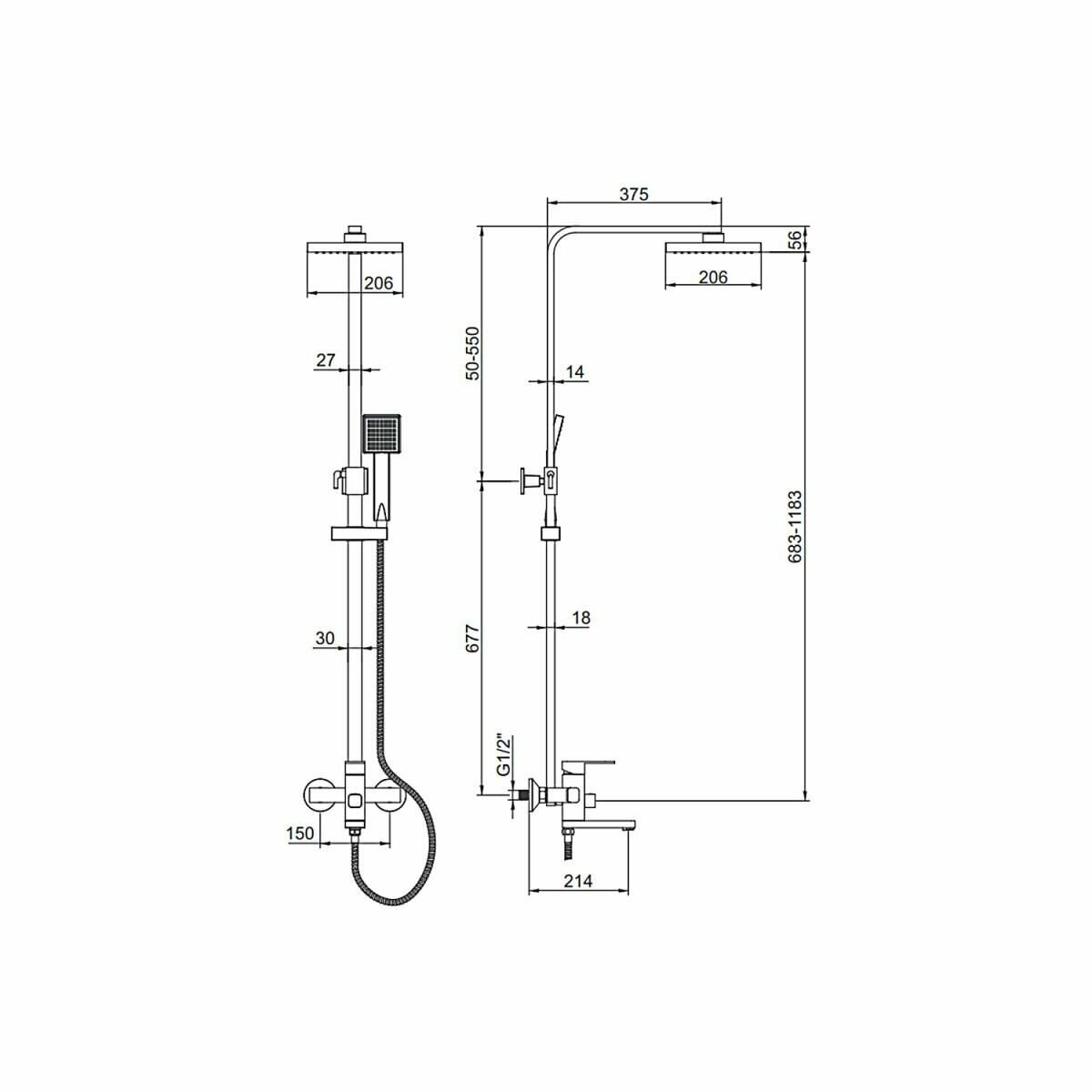| Комплектация | смеситель - 1 шт. / душевая стойка - 1 шт. / верхний душ - 1 шт. / душевая лейка - 1 шт. / Душевой шланг 1 шт. / держатель для душевой лейки - 1 шт. / настенный держатель - 1 шт. |