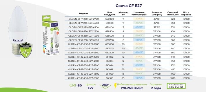 Ниже Вы можете прочитать отзывы на Светодиодная лампа General свеча C37 E27 12W 2700K 2K 35х105 пластик/алюм GLDEN-CF-12-230-E27-2700 661092, ознакомится с подробными характеристиками, посмотреть интересные обзоры и фотографии на Светодиодная лампа General свеча C37 E27 12W 2700K 2K 35х105 пластик/алюм GLDEN-CF-12-230-E27-2700 661092.