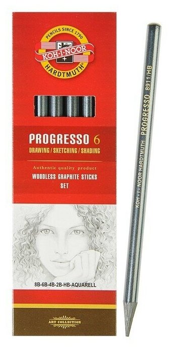 Чернографитовые карандаши KOH-I-NOOR Набор карандашей чернографит. без дерева "Progresso" KOH-I-NOOR, 6шт. (HB-8B и акварельный)