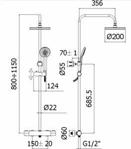 Душевая система без излива Paffoni Birillo, арт. ZCOL643CR, 1 режим, 20 см, round, термостат, верхний душ, с лейкой