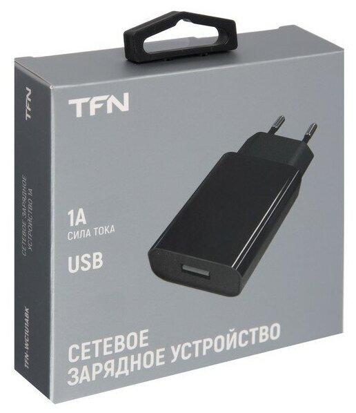 Зарядное устройство сетевое TFN, USB, 1A, черный (TFN-WC1U1ABK)