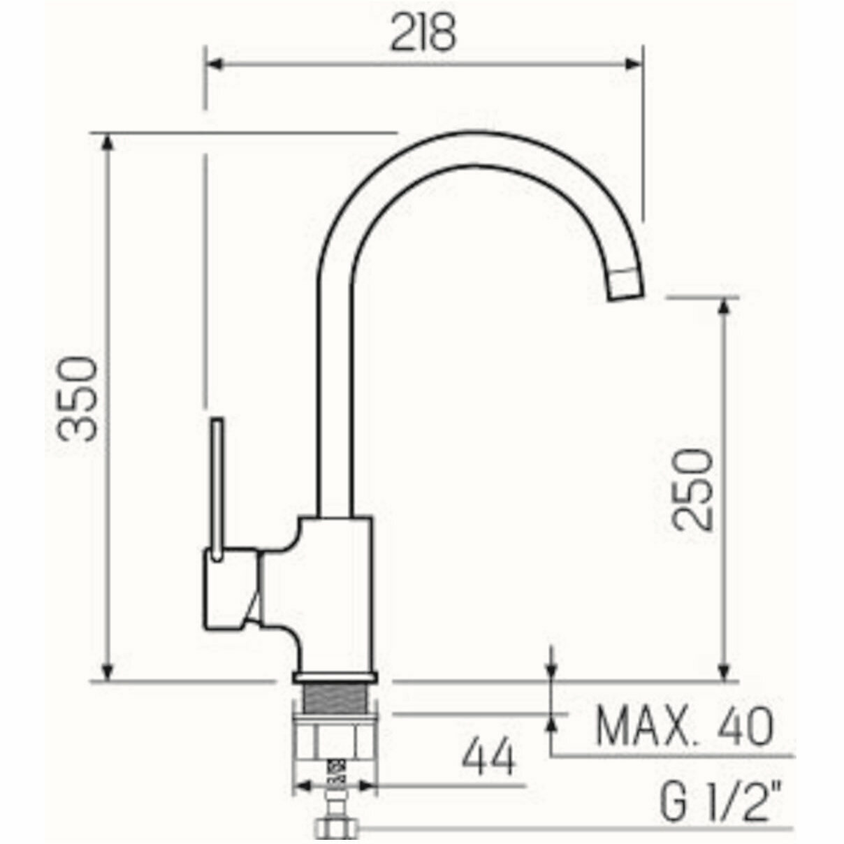 Смеситель для кухни, РМС SL130-017F, латунь, поворотный излив, однорычажный, с гибкой подводкой