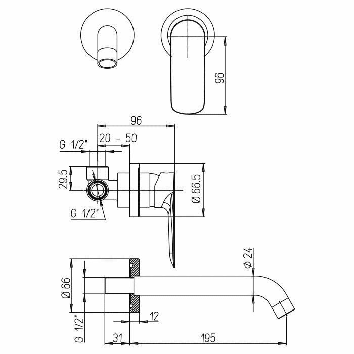 Встраиваемый в стену смеситель для раковины Paini Nove, арт. 09CR208