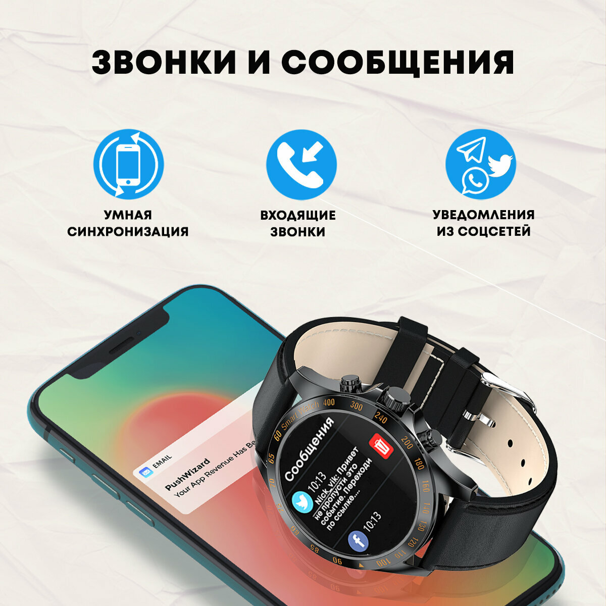 СохранитьKingwear Умные часы Smart watch KingWear LW09 (Черный, с черным кожаным ремнем) интересное: