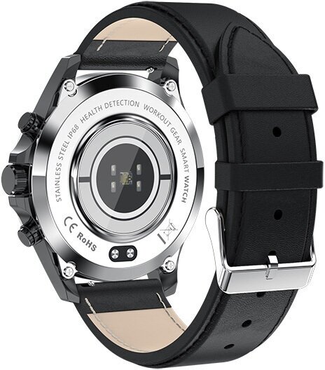 Смарт часы мужские классические KingWear LW09 с функциями фитнес браслета, корпус черный метал, кожаный черный ремешок