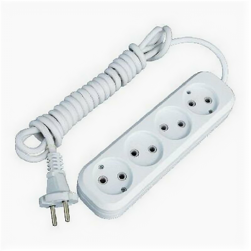 Удлинитель 4 гнезда 2 метра 10А/2,2кВт без заземления ПВС 2х1,0 (SBE-10-4-02-N) (1/50)