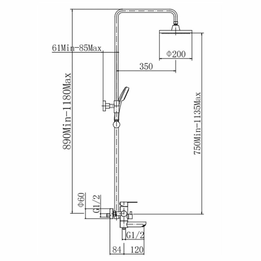 | Комплектация | душевая стойка, смеситель, штанга 750-1135 мм, верхняя лейка, ручная лейка, шланг 1500 мм, установочный комплект |