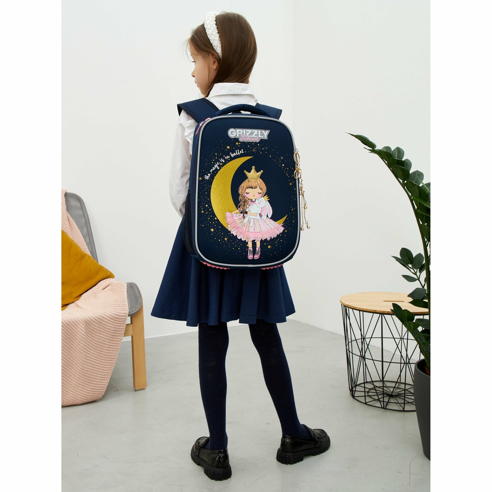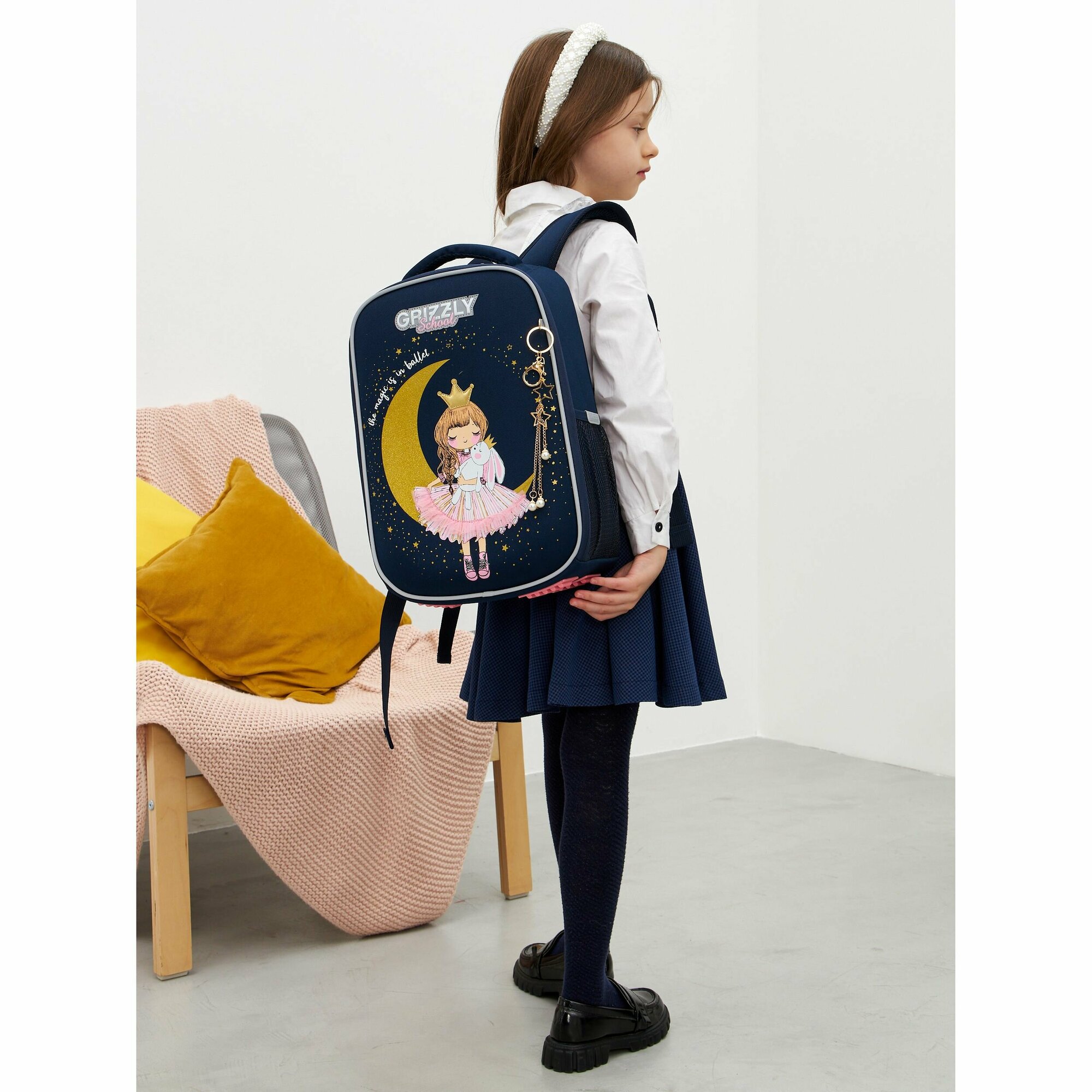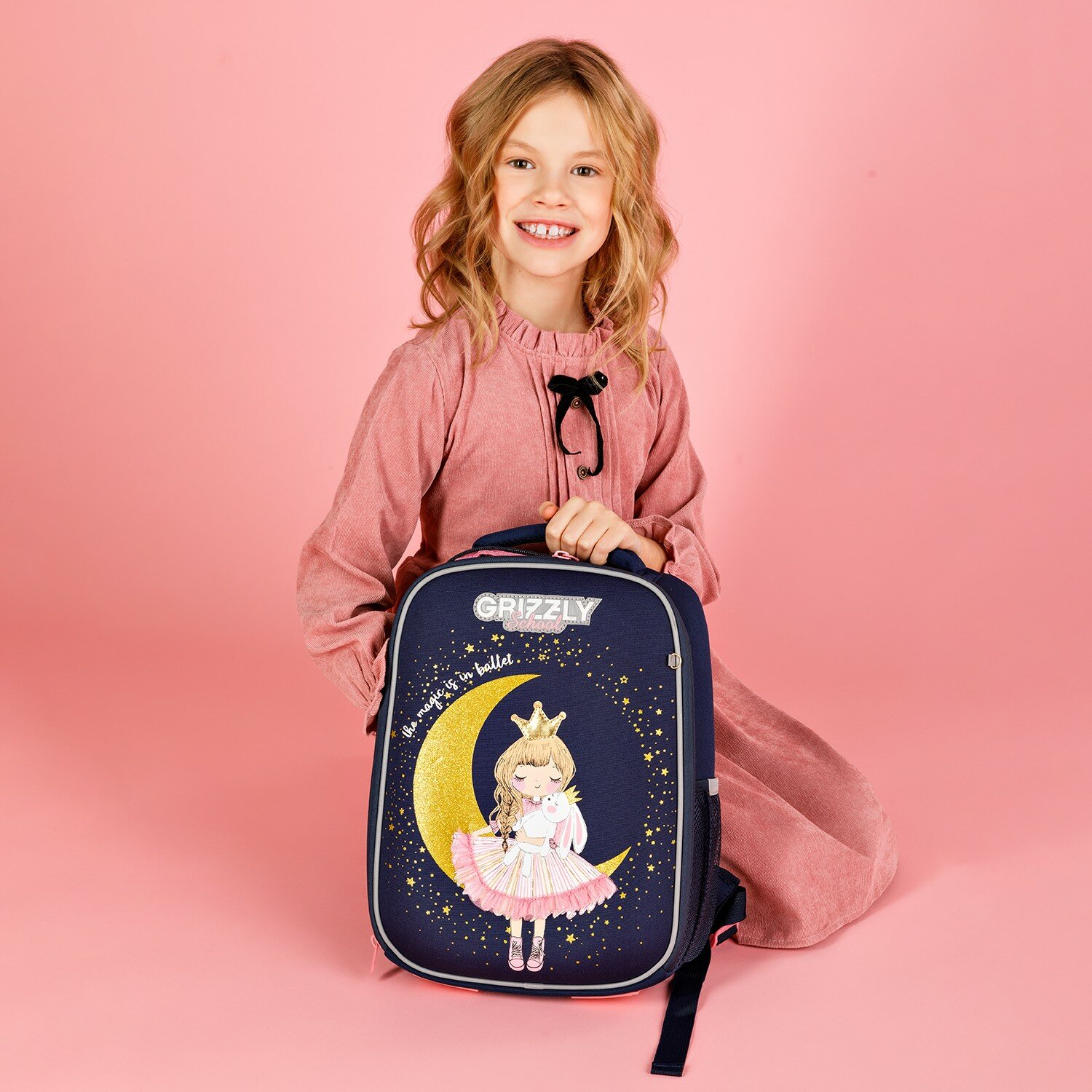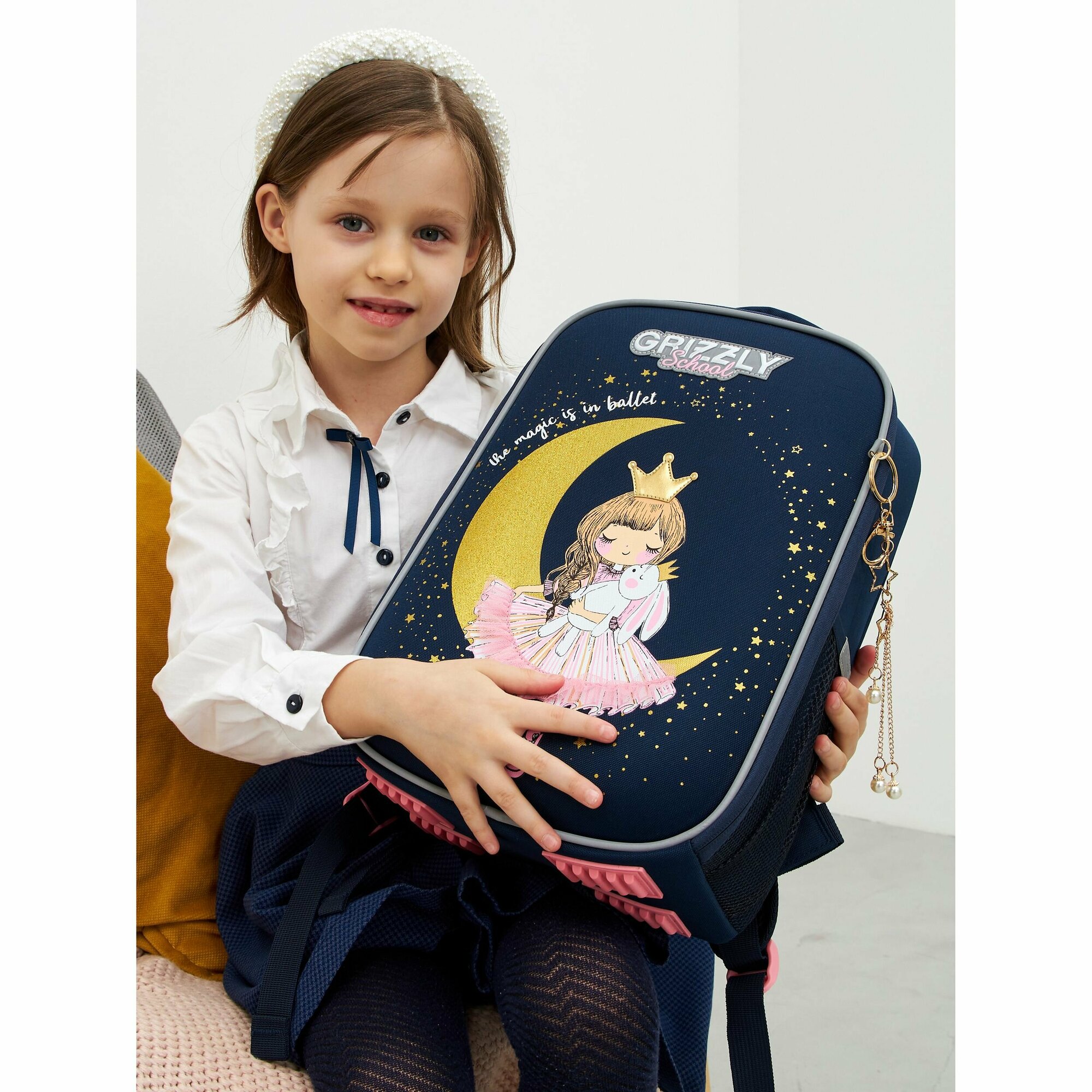 Ранец GRIZZLY анатомическая спинка, облегченный, для девочек, PRINCESS, 37х26х16 см, RAw-396-7/3, 1шт в компл.