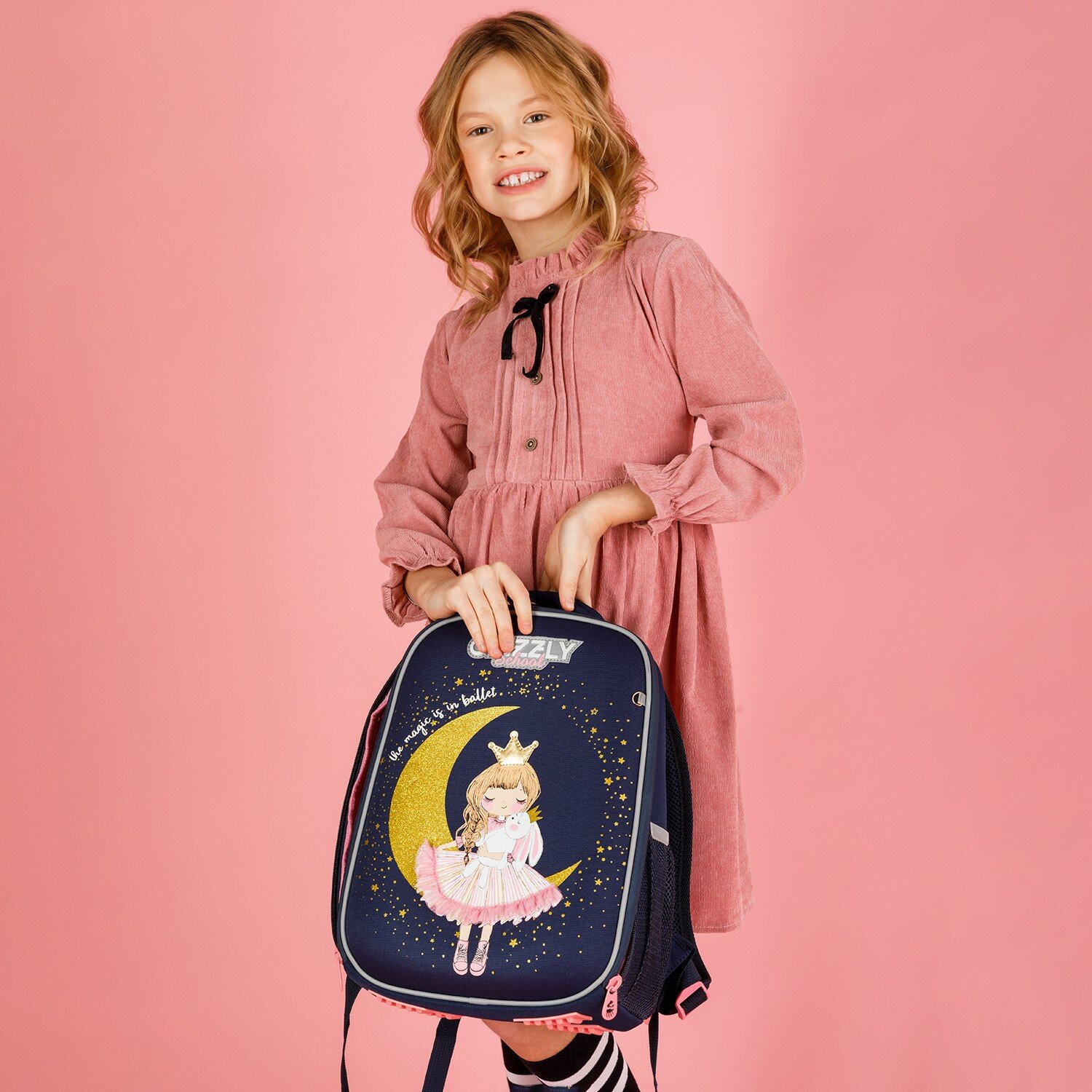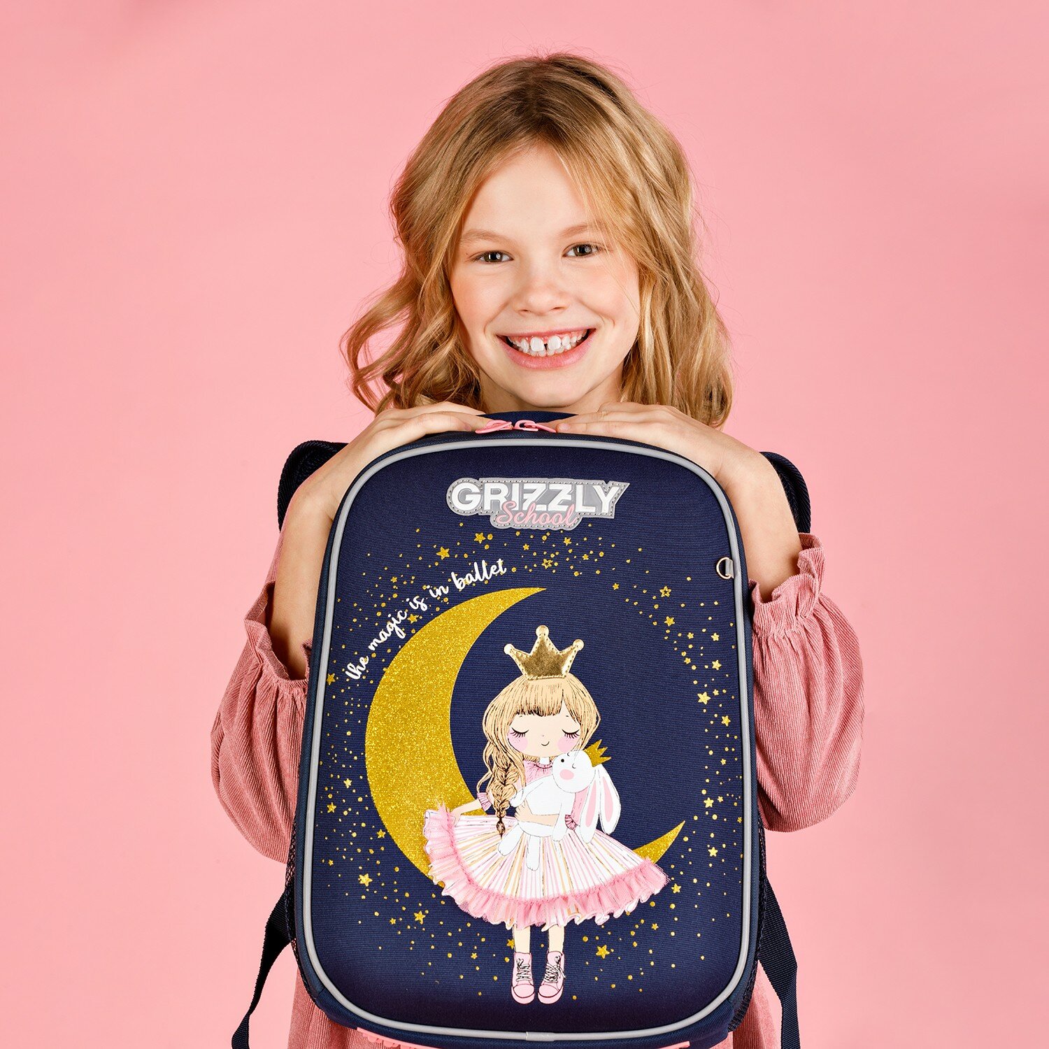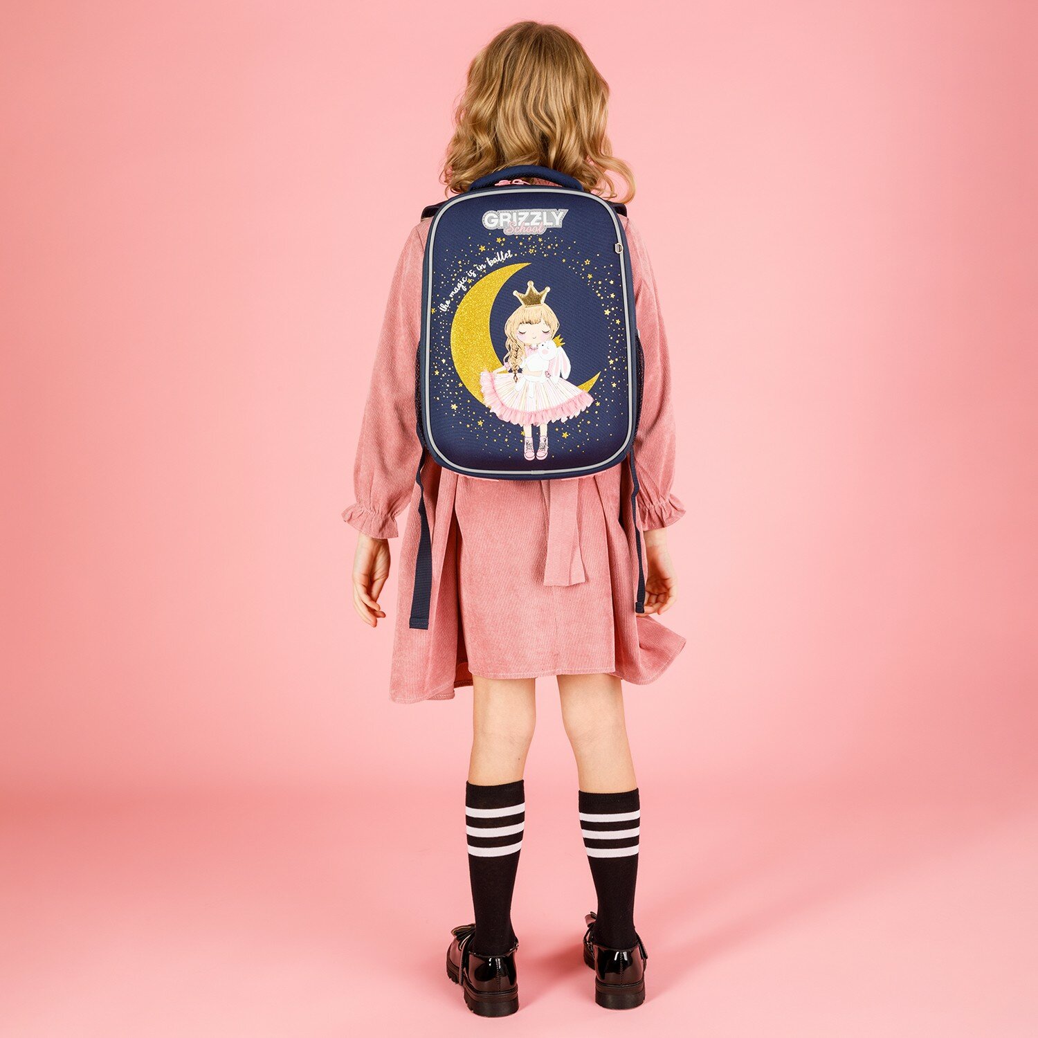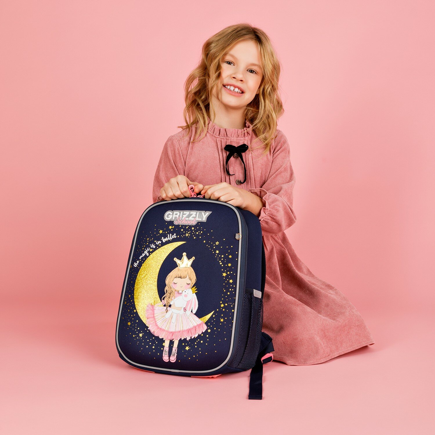 Ранец GRIZZLY анатомическая спинка, облегченный, для девочек, PRINCESS, 37х26х16 см, RAw-396-7/3, 1шт в компл.