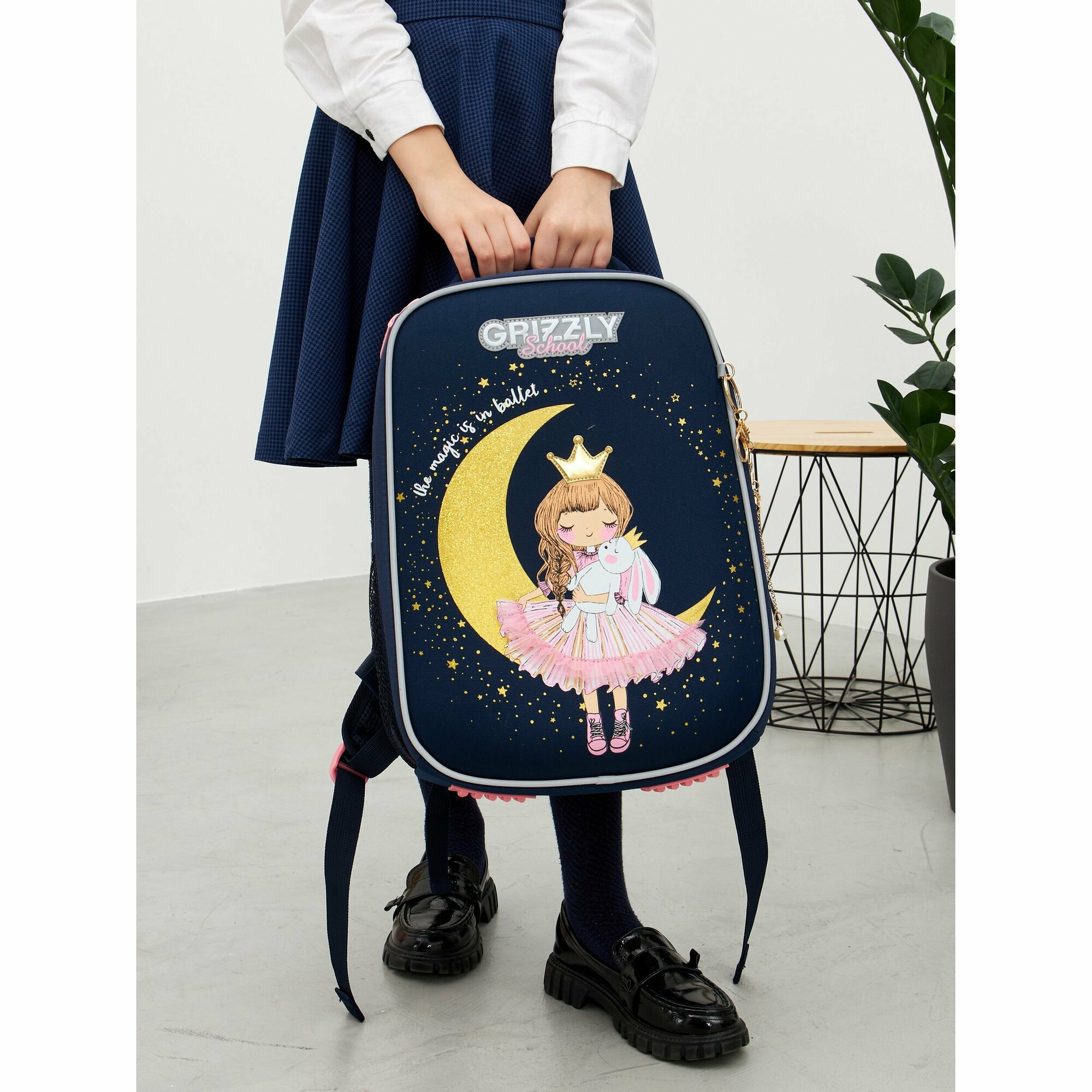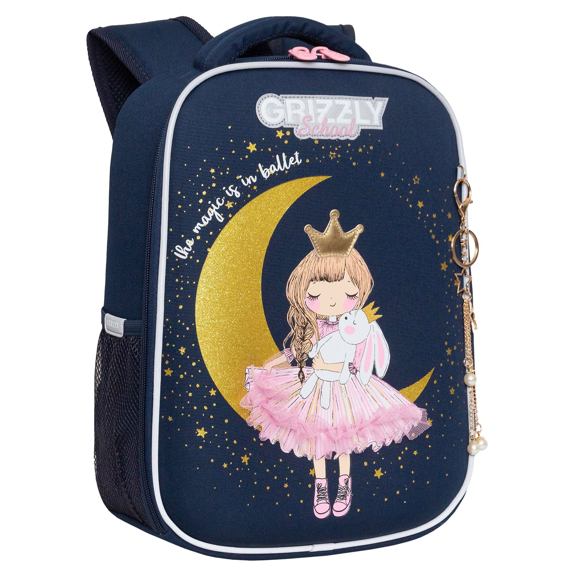 Ранец каркасный, 37 х 26 х 16 см, Grizzly, + брелок, чёрный/золотой