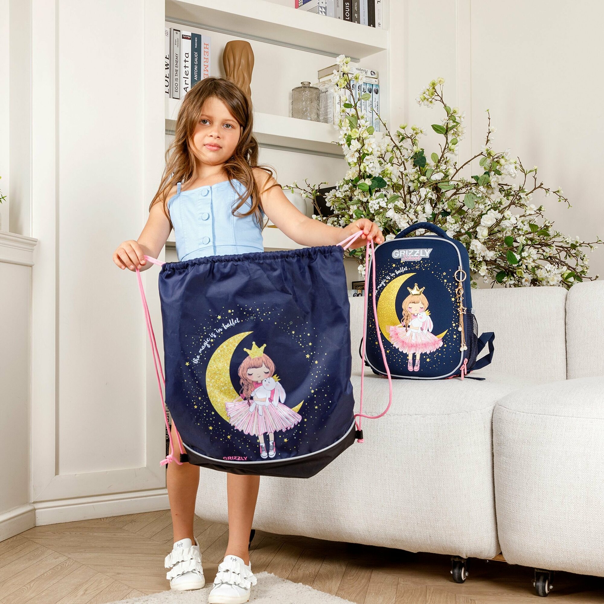 Ранец GRIZZLY облегченный с одним отделением, для девочек RAw-496-1/1