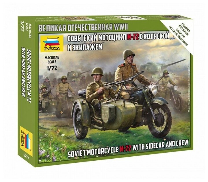Сборная модель ZVEZDA Советский мотоцикл М-72 с коляской и экипажем (3639)