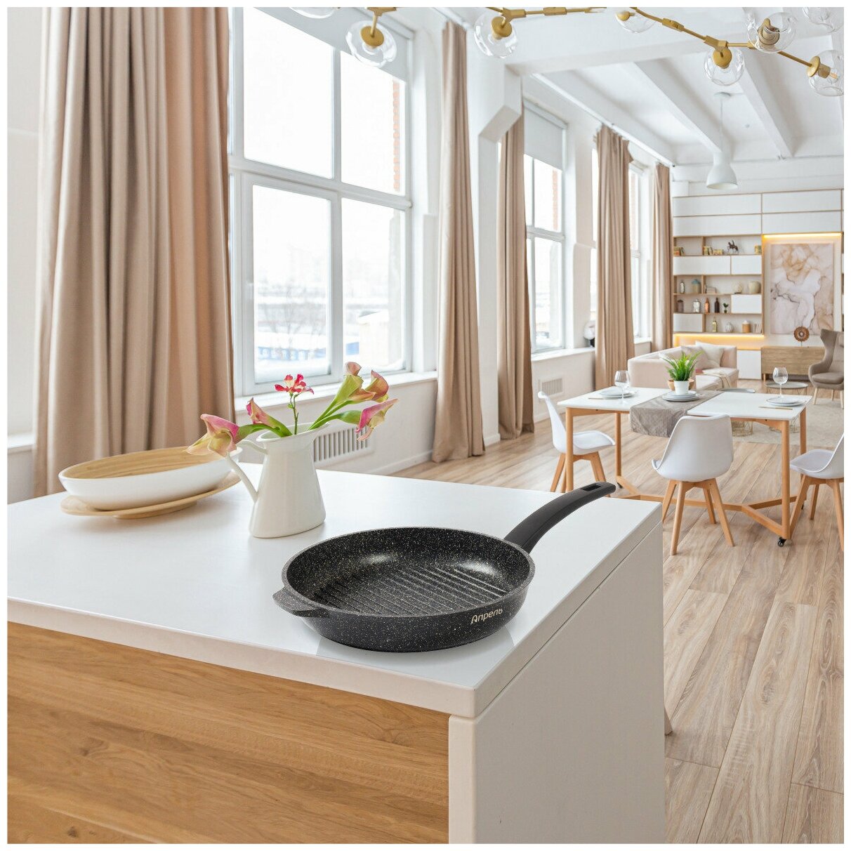 Сковорода-гриль "Апрель" 26см Гранит с антипригарным покрытием с несъемной ручкой, можно мыть в посудомоечной машине
