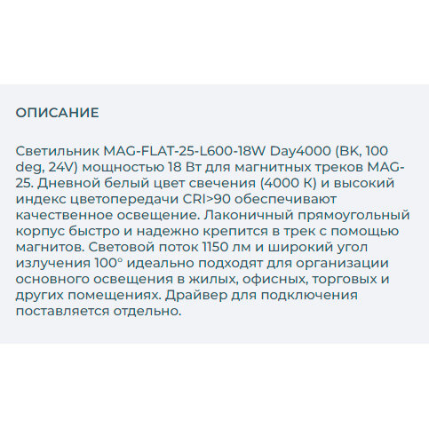 026955 Светильник MAG-FLAT-45-L605-18W Day4000 (BK, 100 deg, 24V) (Arlight, IP20 Металл, 3 года)