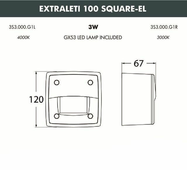 Светильник для подсветки лестниц накладной FUMAGALLI EXTRALETI 100 Square-EL 3S3.000.000.LYG1L