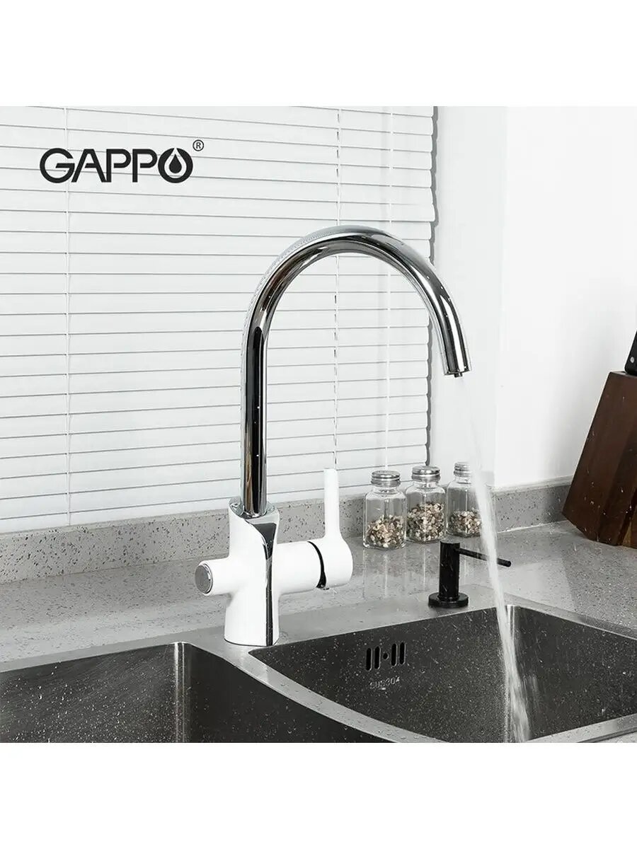 Смеситель для кухни под фильтр Gappo G4303-8 белый/хром