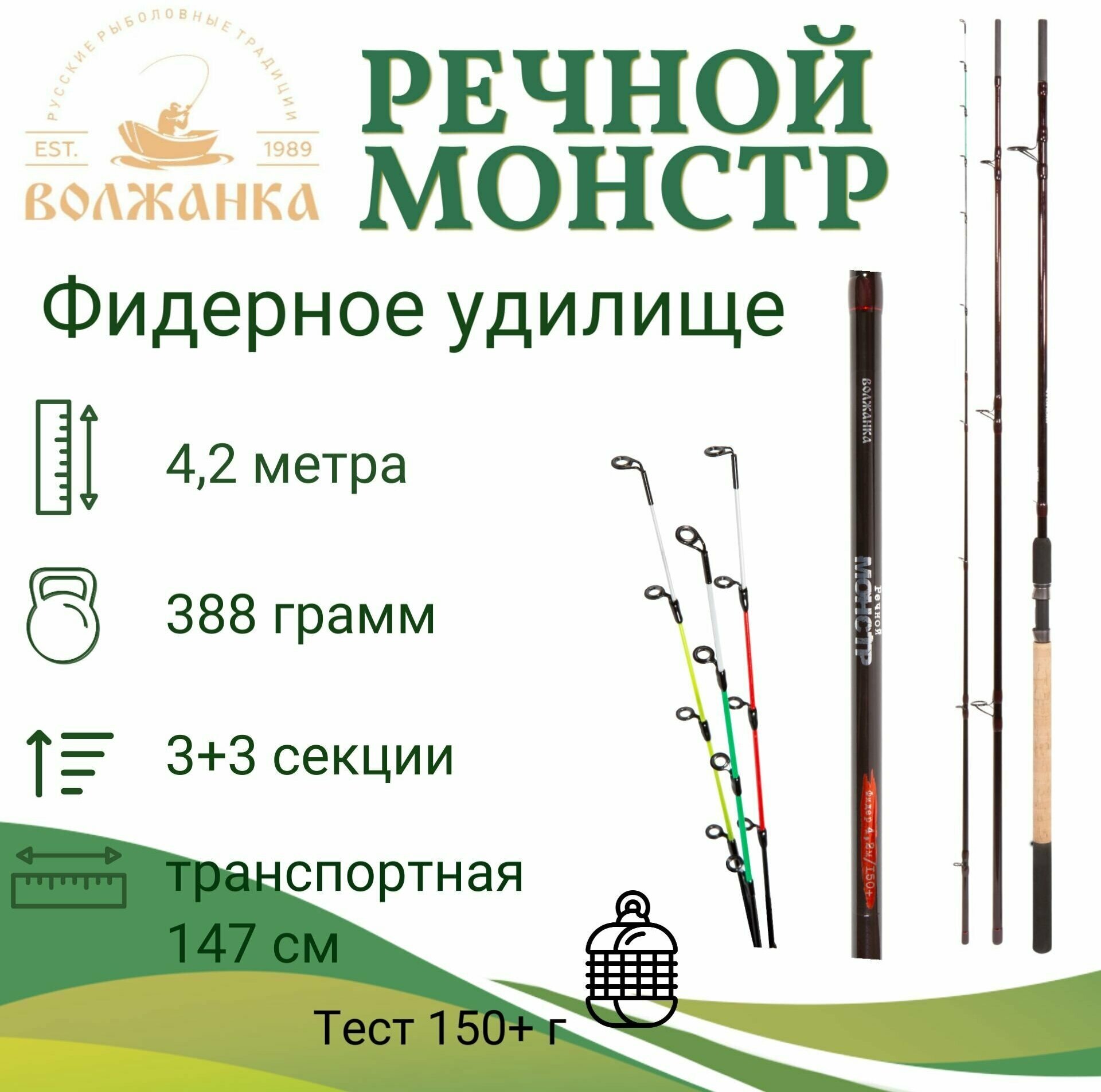 Купить Волжанка Речной Монстр 4.2м 150+ - фидерное удилище для рыбалки