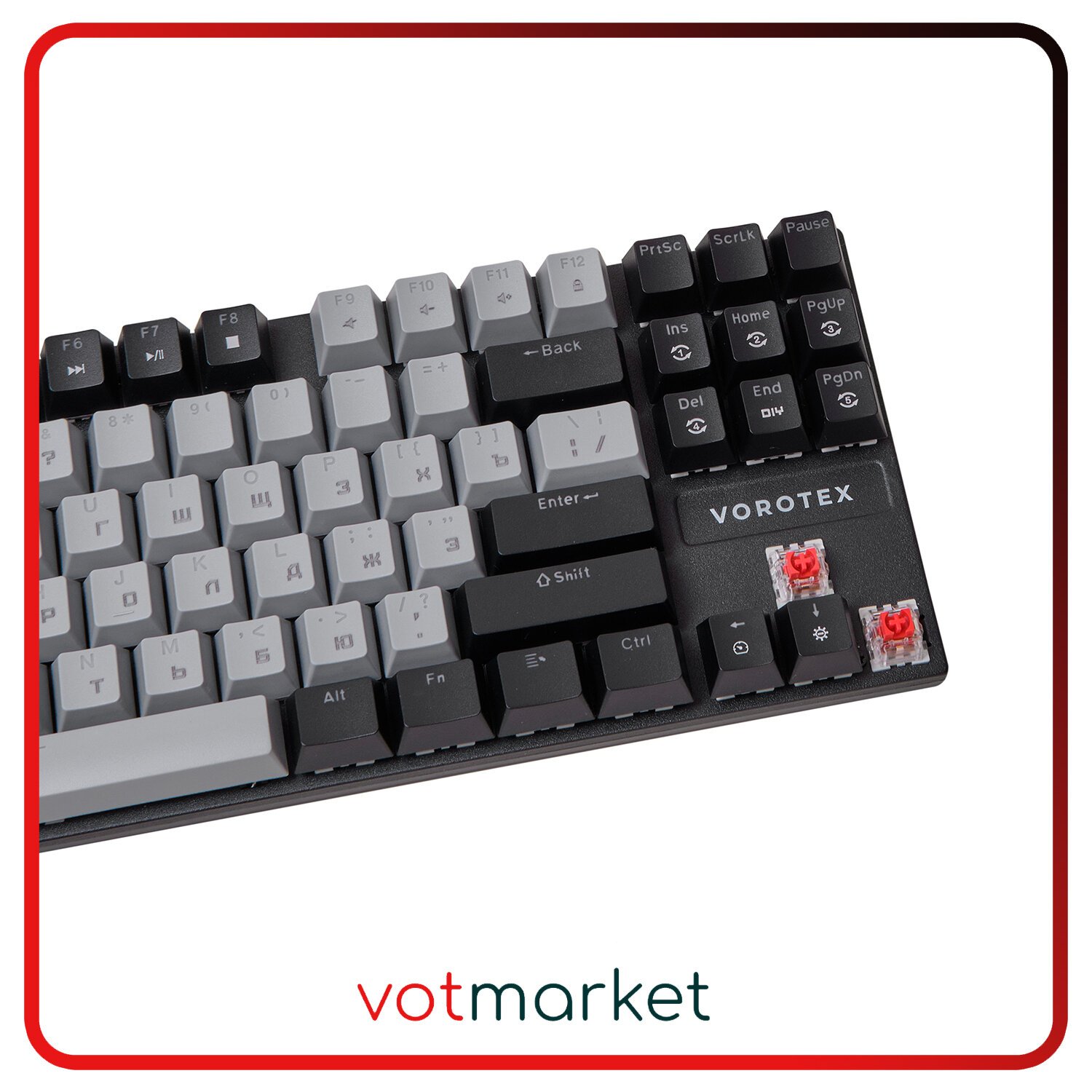 Купить Клавиатура игровая проводная VOROTEX K87S Red Switch, русская раскладка (Серый,чёрный)