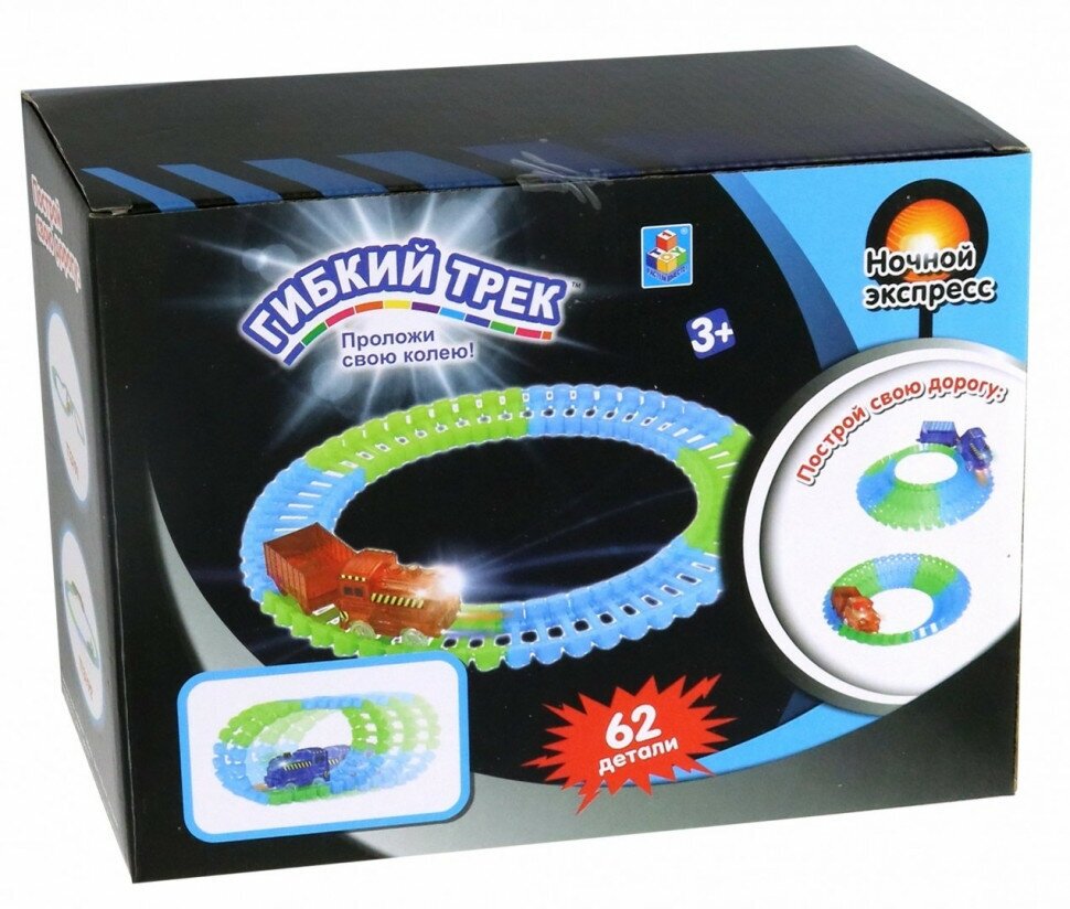 Гибкий трек 1TOY "Ночной Экспресс" 62 детали
