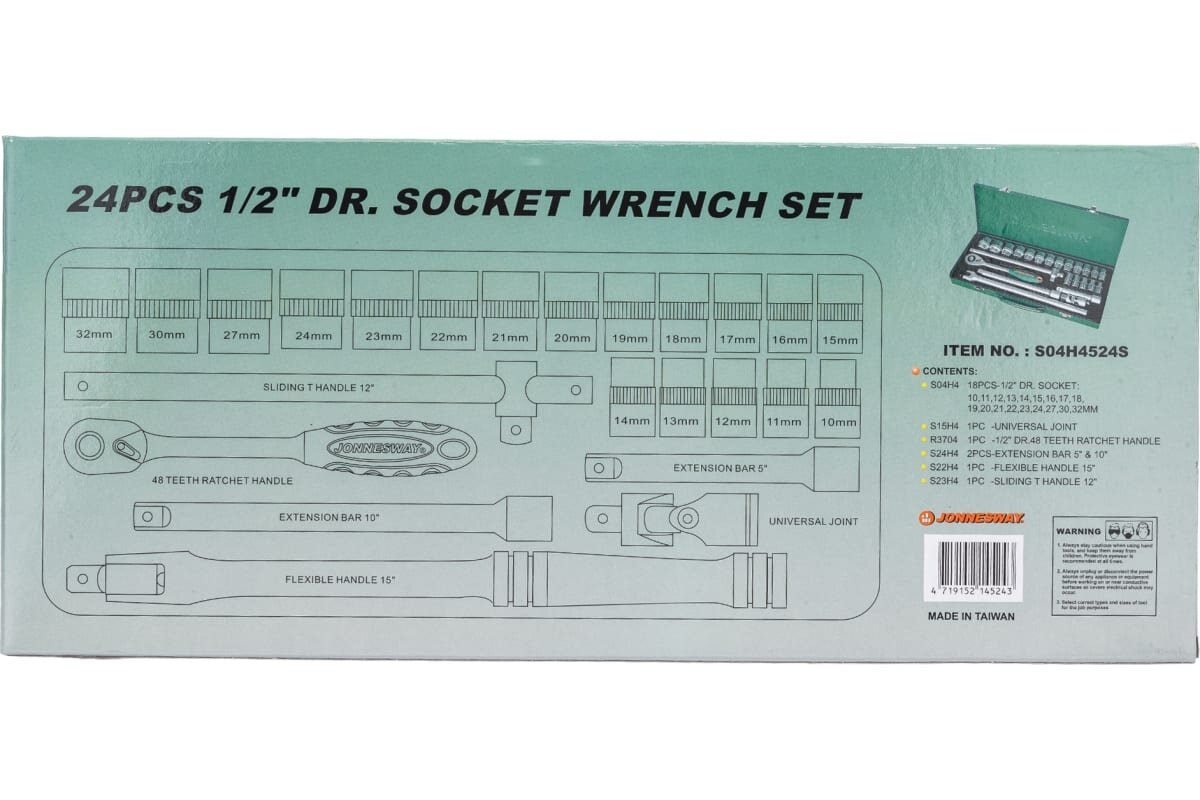 Джонсвей S04H4524S набор головок торцевых 1/2" (24шт) / JONNESWAY S04H4524S набор головок торцевых с трещоткой 1/2" (упак. 24шт)
