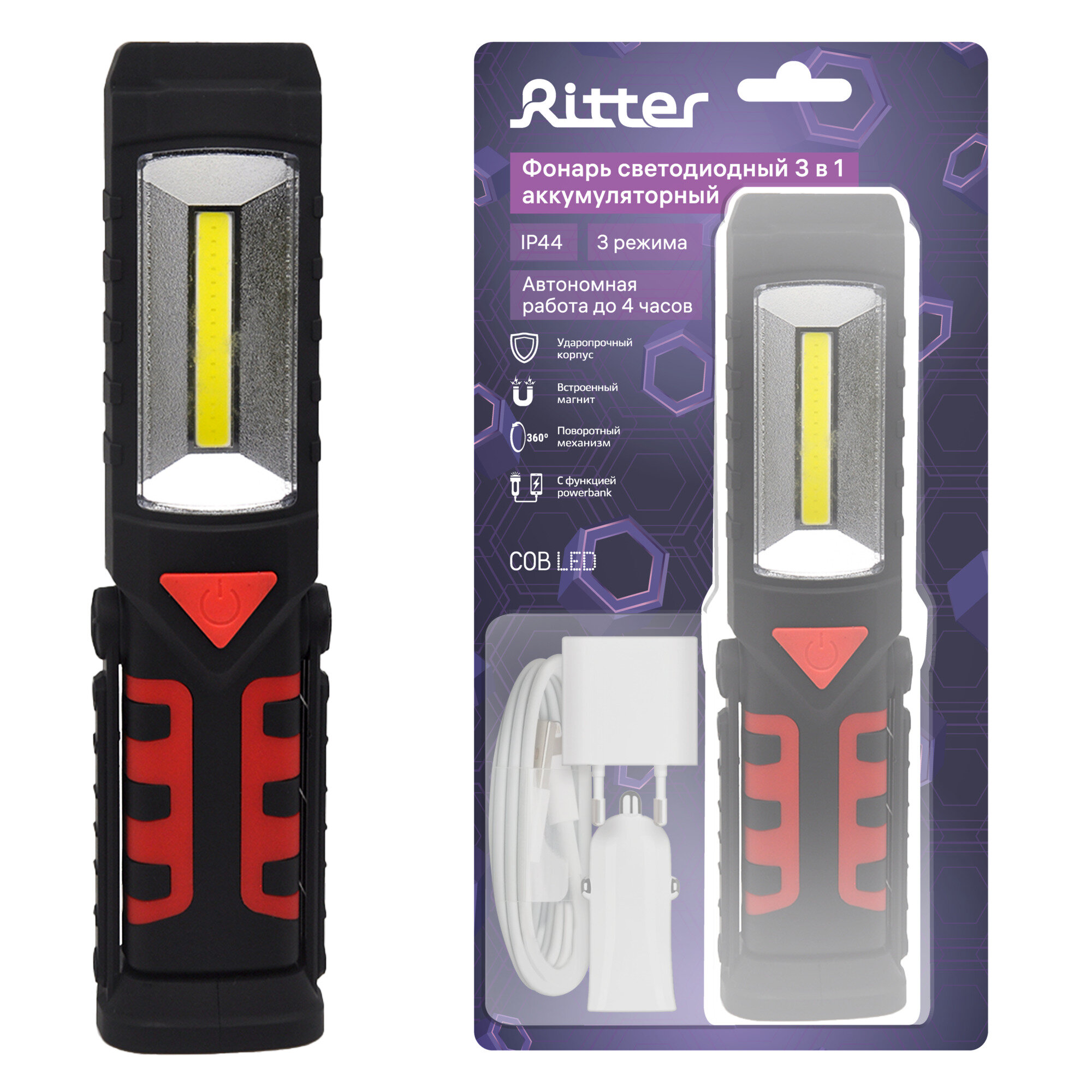 Фонарь рабочий сд Worklight HD 3568 ACCU 2000 COB 6Вт + 1 LED аккум. 2000мАч Ritter