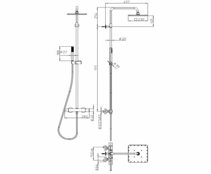 Душевая стойка, верхний душ 23х23 см, с термостатом без излива BOSSINI COSMO, хром. L10103.030 интересное: