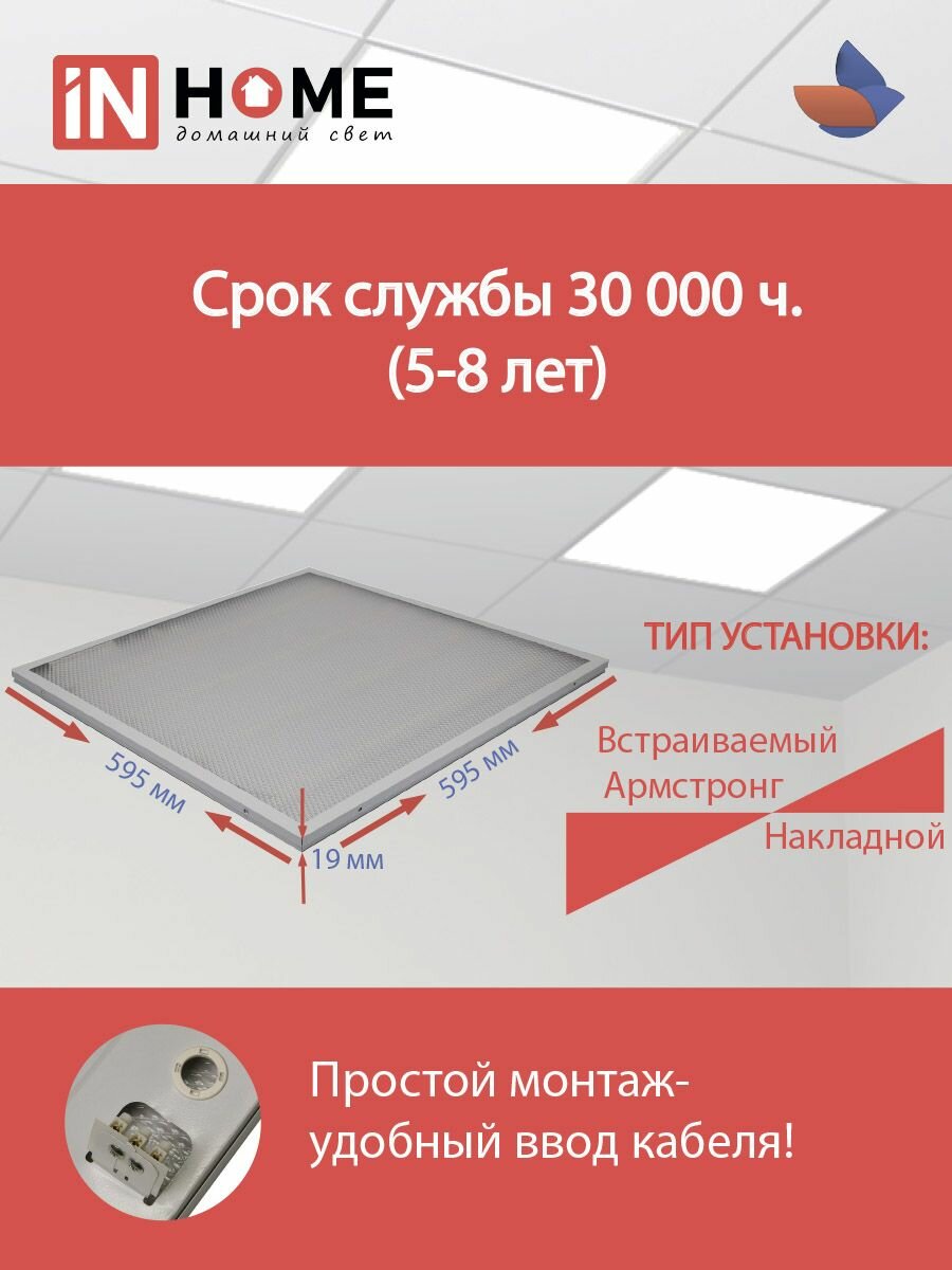 In Home LPU-02-ПРИЗМА 100Вт 6500К IP40 8500лм 230В 595х595х19мм встраив. с рассеив. призма универс. панель 4690612029795 (белый)