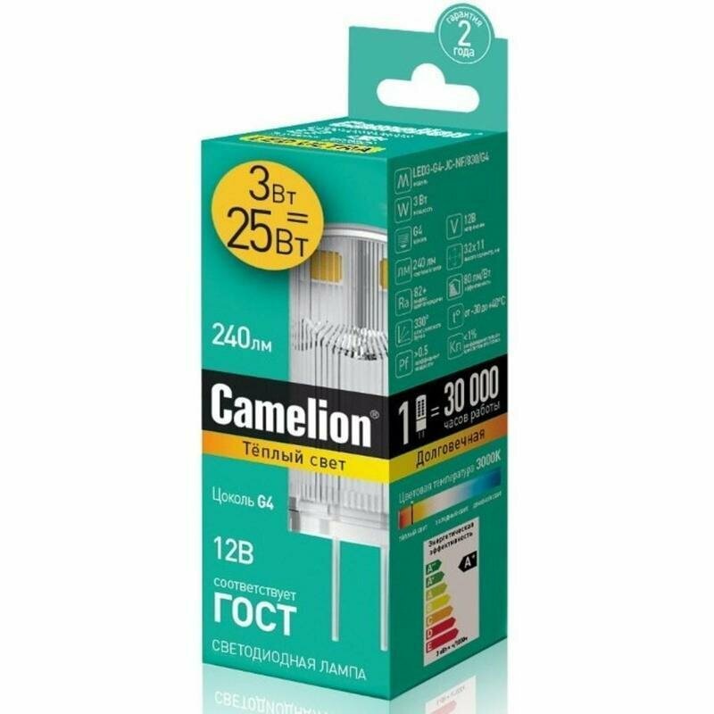 Лампа светодиодная Camelion JC NF G4 3 Вт 3000К 12V теплый свет 13700