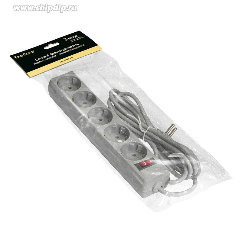 EXEGATE Сетевой фильтр EX221186RUS Сетевой фильтр SP-5-3G 5 розеток, 3м, евровилка, серый