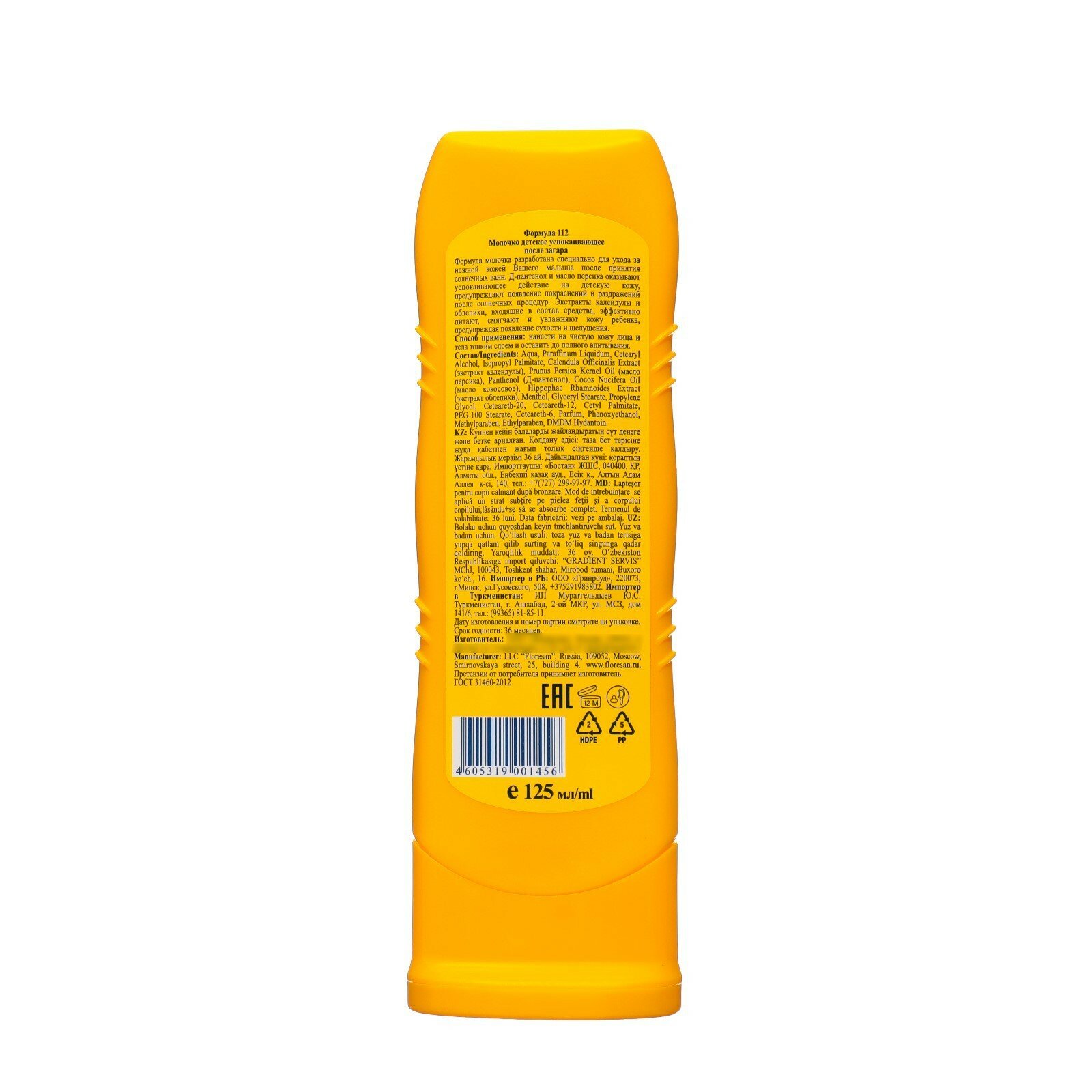 Детское успокаивающее молочко после солнца 125 мл 102554