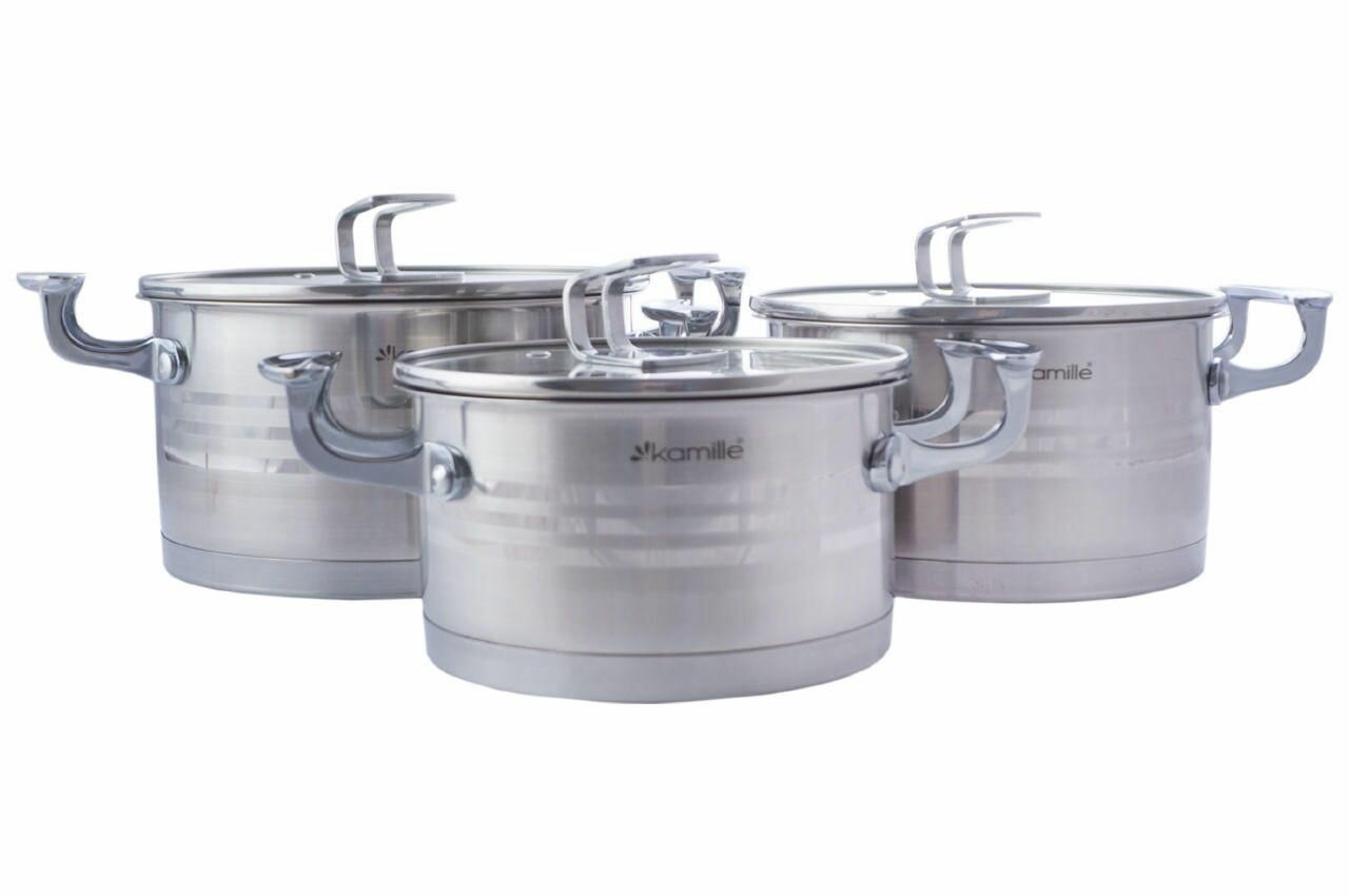 Набор кастрюль 6 предметов Kamille KM-5861 (1,7 л; 2,4 л; 3,1 л из нержавеющей стали