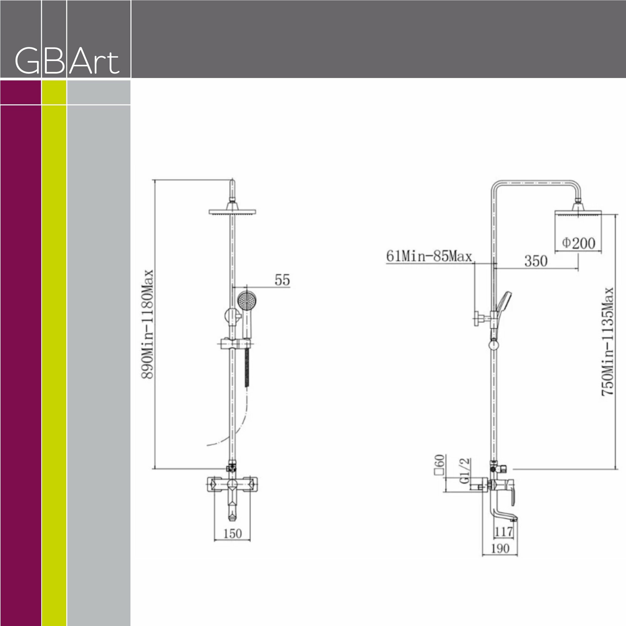 | Комплектация | Душевая стойка ,смеситель / установочный комплект / штанга / верхняя лейка / ручная лейка / шланг |