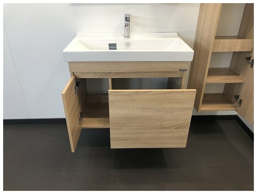 Тумба с раковиной Comforty Турин 75М подвесная дуб бежевый