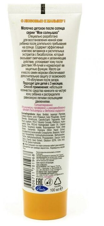 Молочко после солнца детское Мое Солнышко туба 100мл