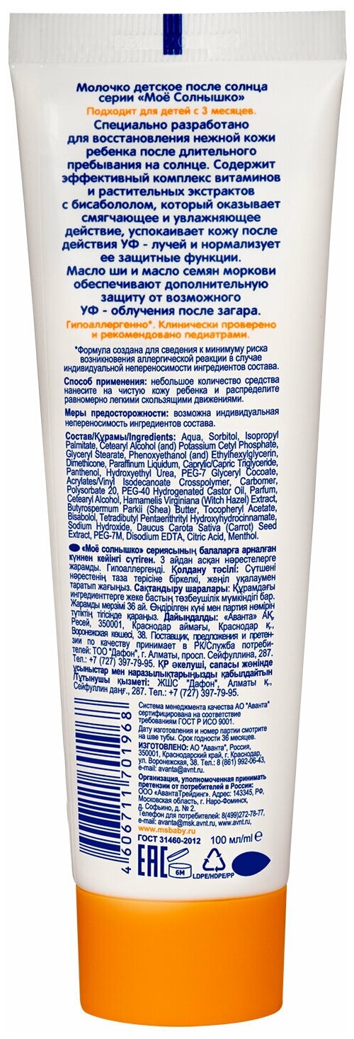 МОЕ солнышко молочко после солнца для детей туба 100мл