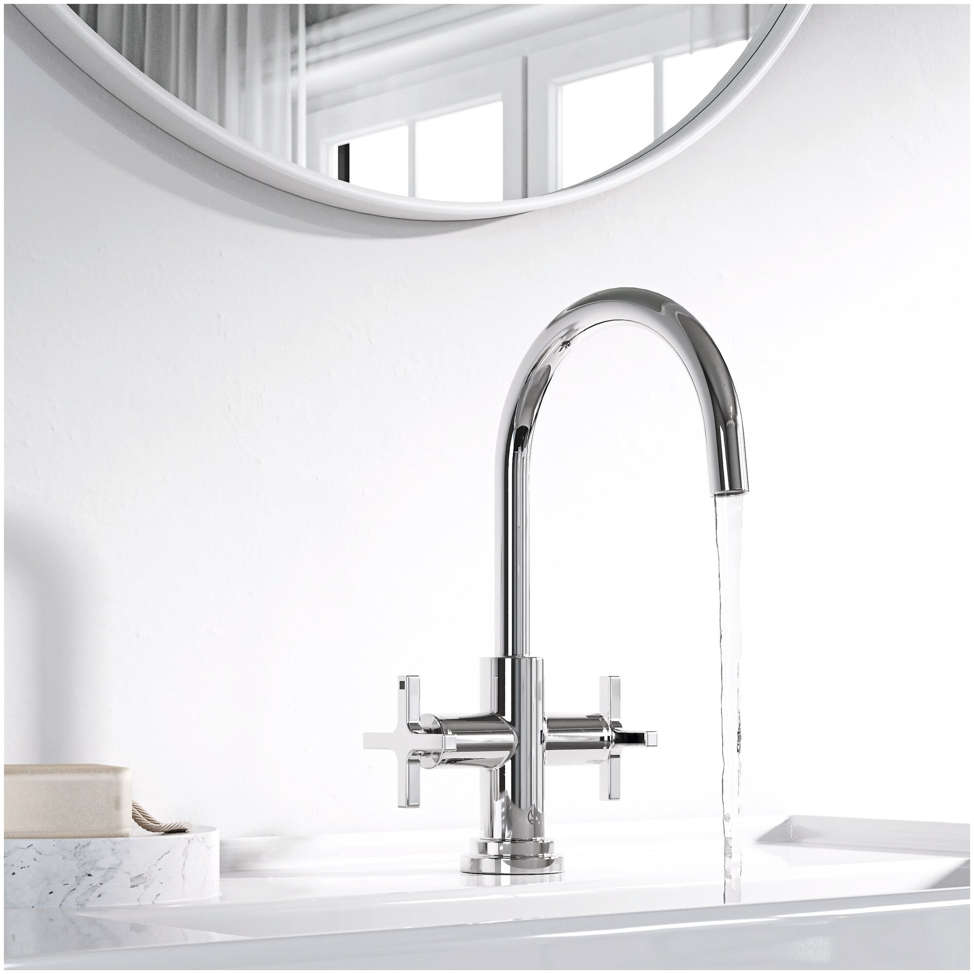 Смеситель для умывальника Kludi Nova Fonte, арт. 201180520, поворотный излив, с донным клапаном, крестообразные рукоятки