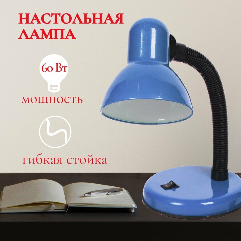 Купить Светильник настольный на подставке, E27, 60 Вт, черный, абажур синий, Lofter, 203В-blu/270790