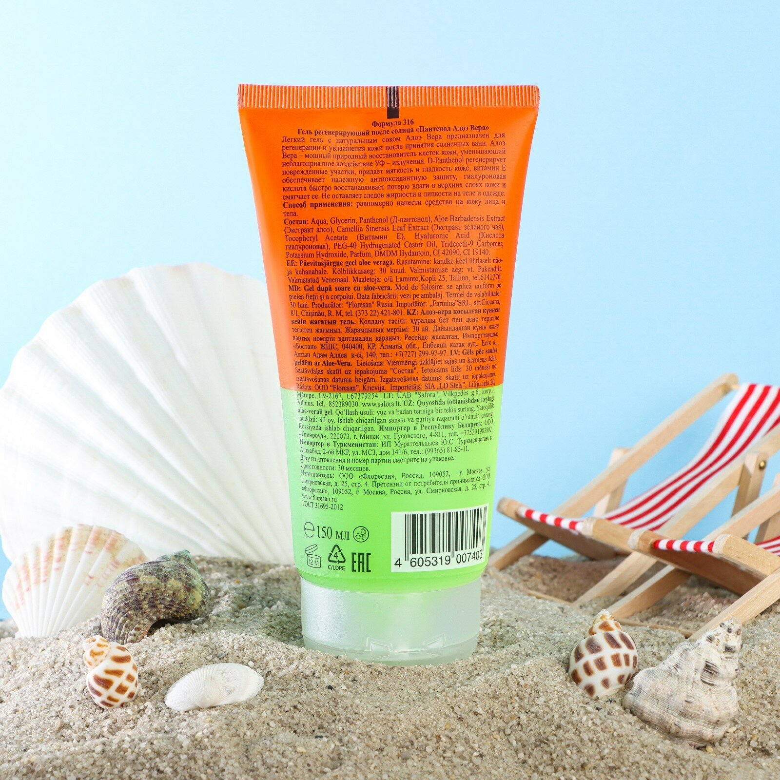 Гель после загара Флоресан Пантенол "Регенерирующий" с алоэ вера 150 мл 42316/Ф-316 деф.