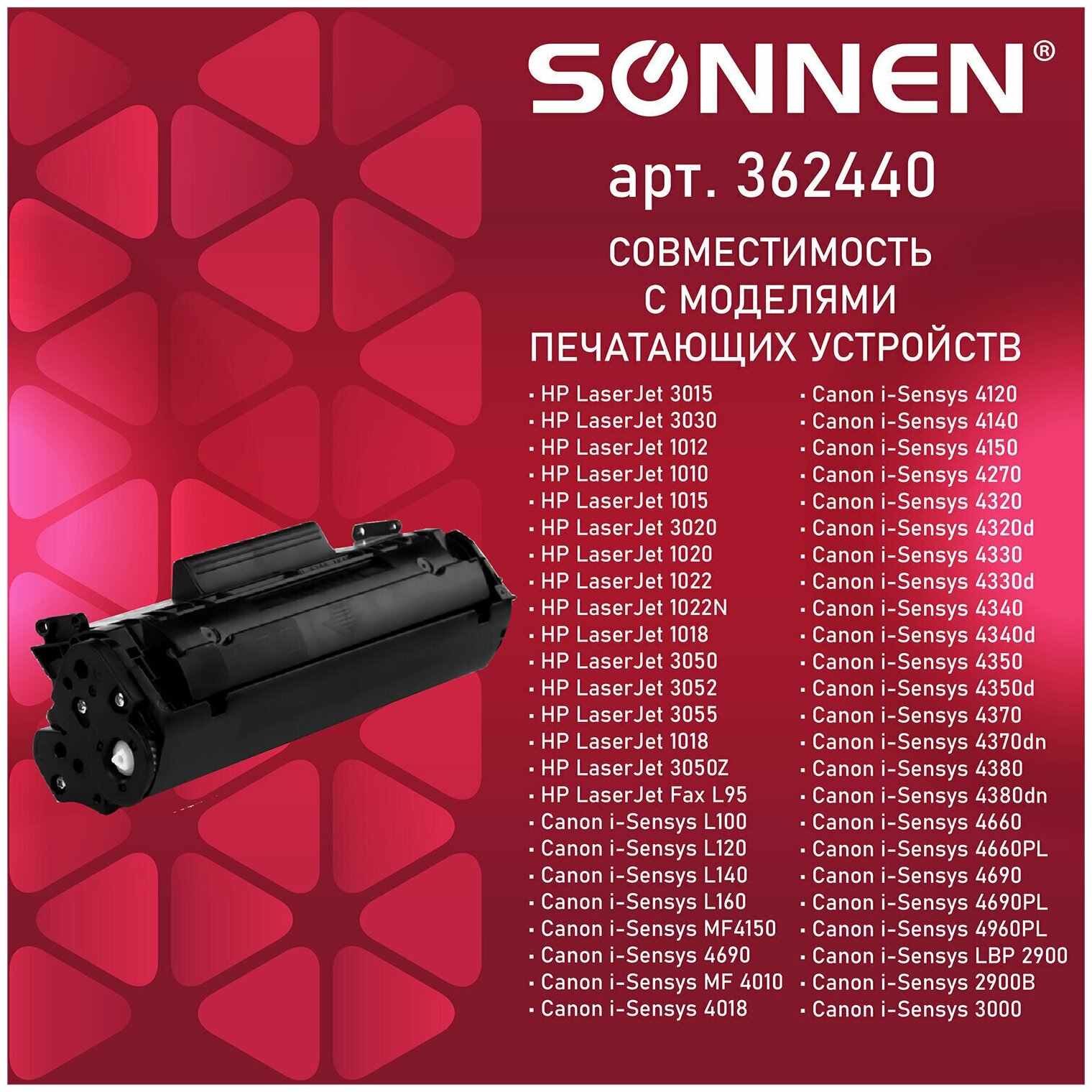 Картридж лазерный SONNEN (SH/C-Q2612/FX10/703) для HP 1010/1018/CANON 4018/2900, высшее качество, ресурс 2000 страниц, 362440 В комплекте: 1шт.