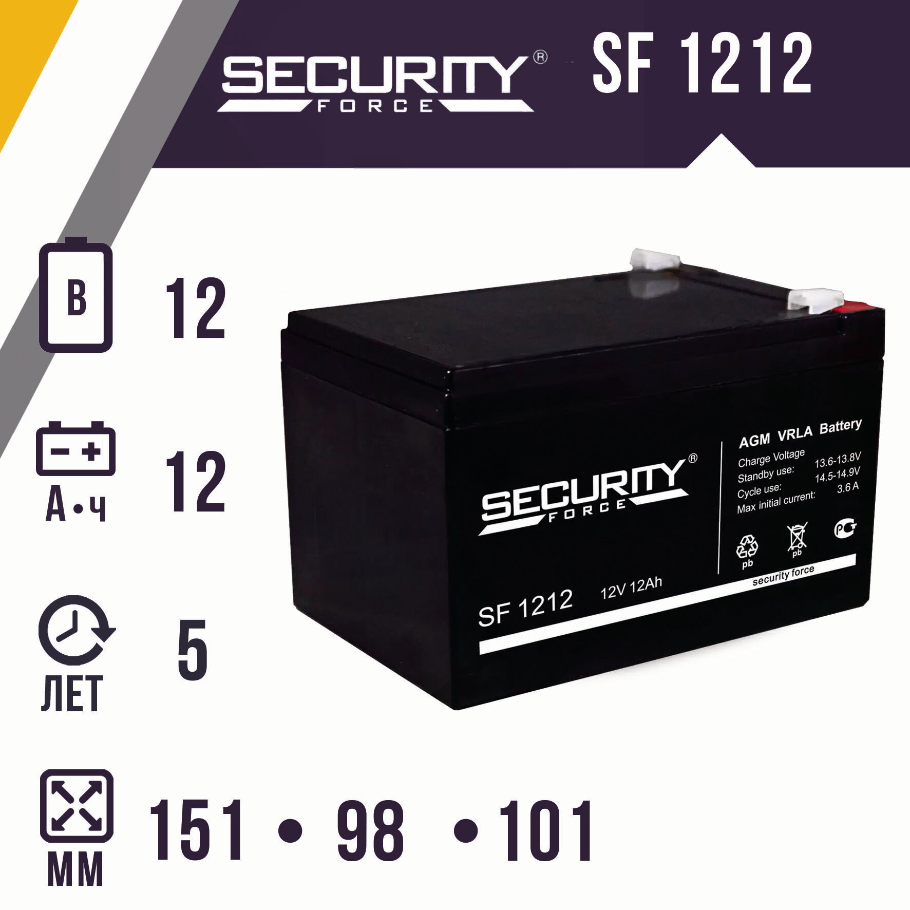 Купить Аккумулятор 12В 12А.ч Security Force SF 1212 ( 1шт. )