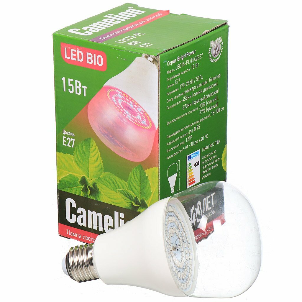 Лампа светодиодная для растений Camelion LED15-PL/BIO/E27 интересное: