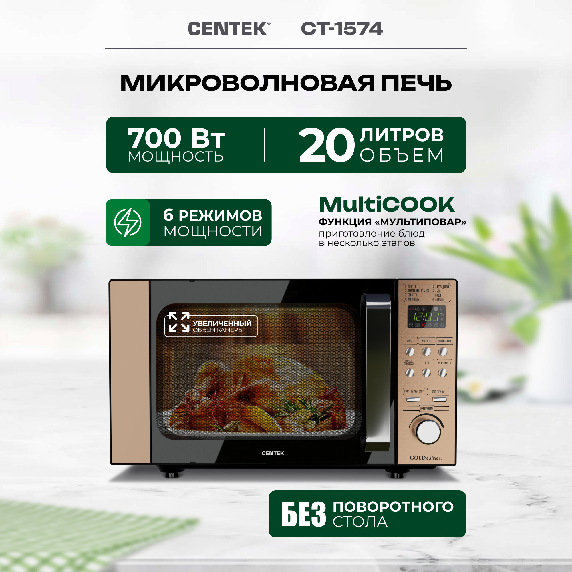Микроволновая печь CENTEK CT-1574 Золотой 20л, 700W, 6 уровней мощности интересное: