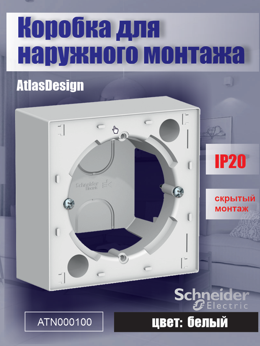 Коробка для наружного монтажа Systeme Electric (schneider Electric) SCHNEIDER ELECTRIC ATLASDESIGN, Белый, ATN000100