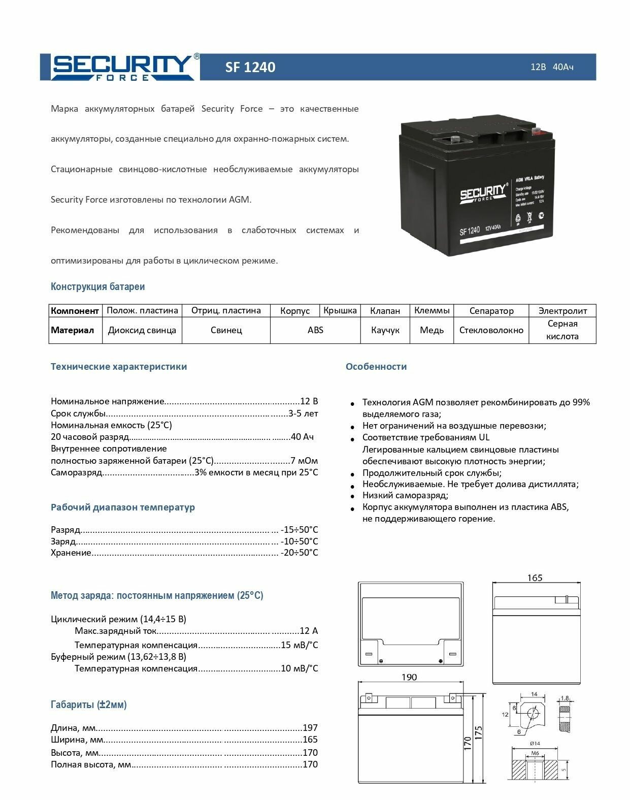 СохранитьАккумулятор свинцово-кислотный (аккумуляторная батарея) 12 В 40 А/ч SF 1240 Security Force интересное: