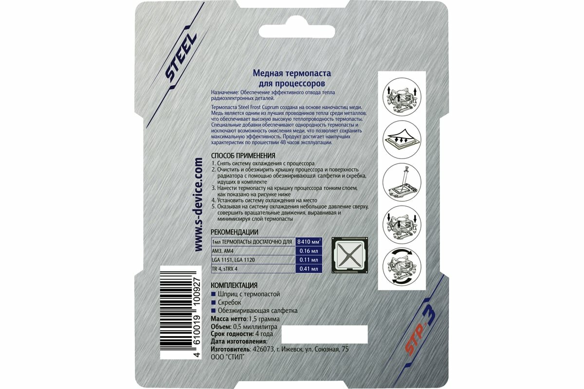 Термопаста Steel STP-3 Frost Cuprum медная для компьютерных процессоров, шприц 3 грамма