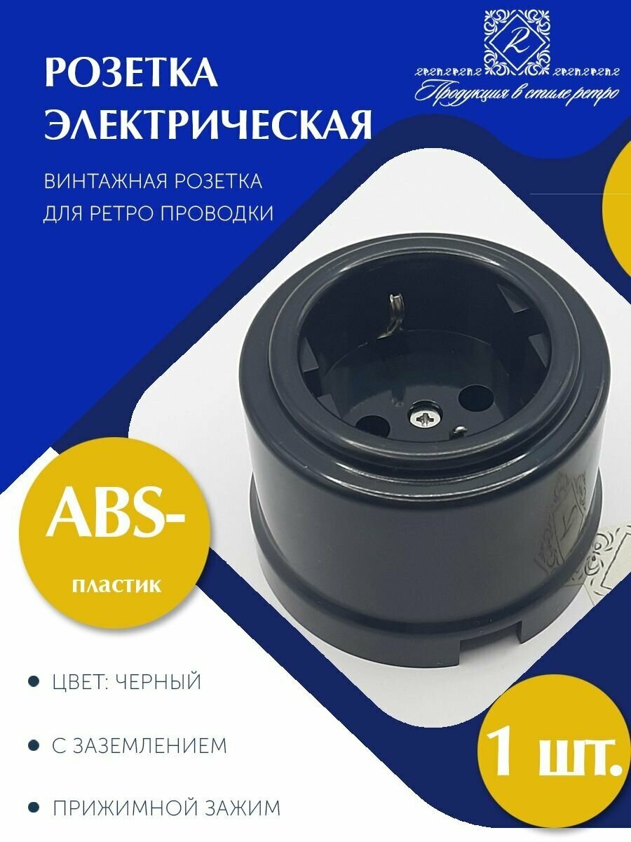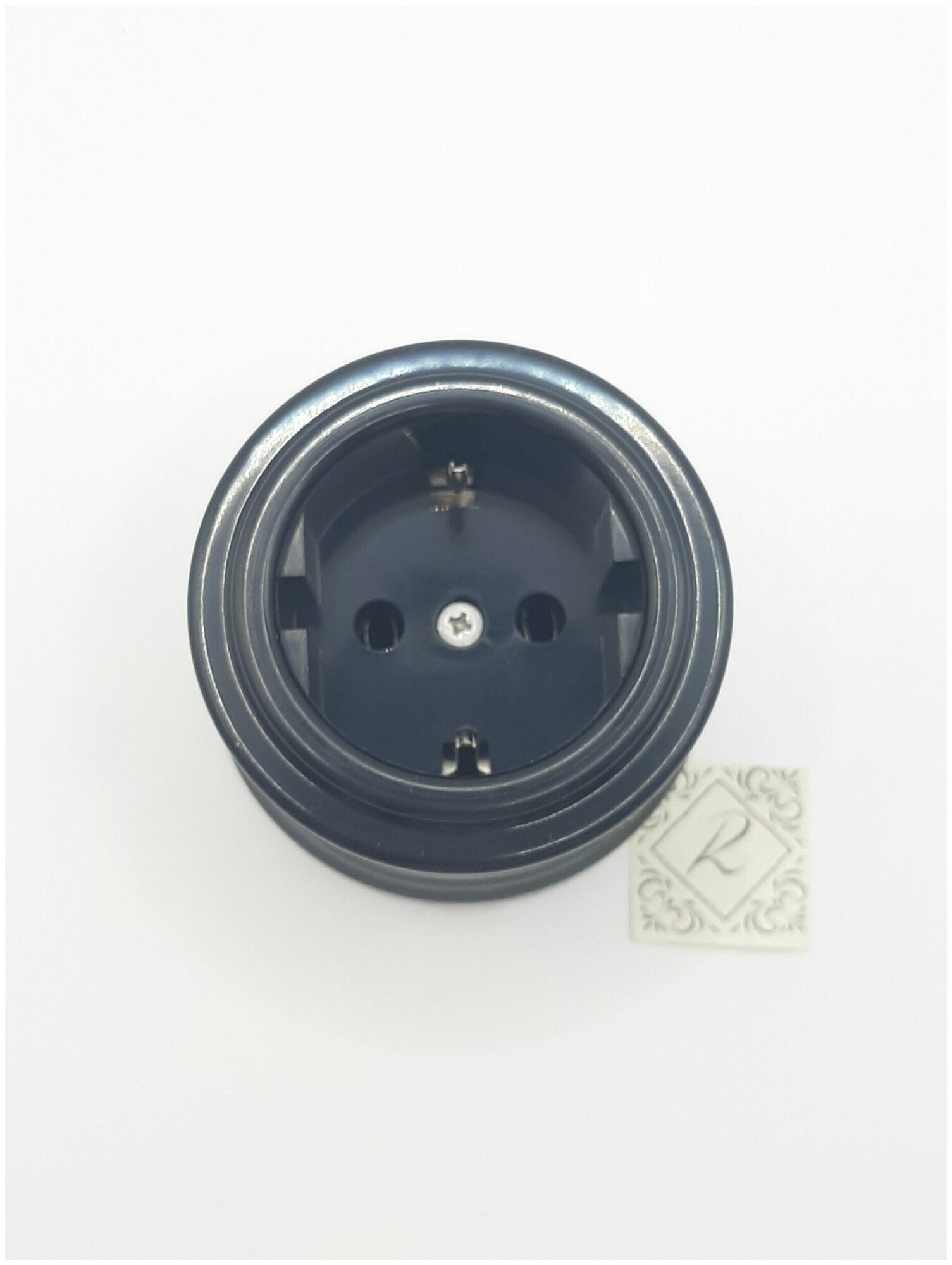 Розетка BIRONI Бирони ретрос заземлением, для наружного монтажа, пластик ,цвет черный B1-101-23