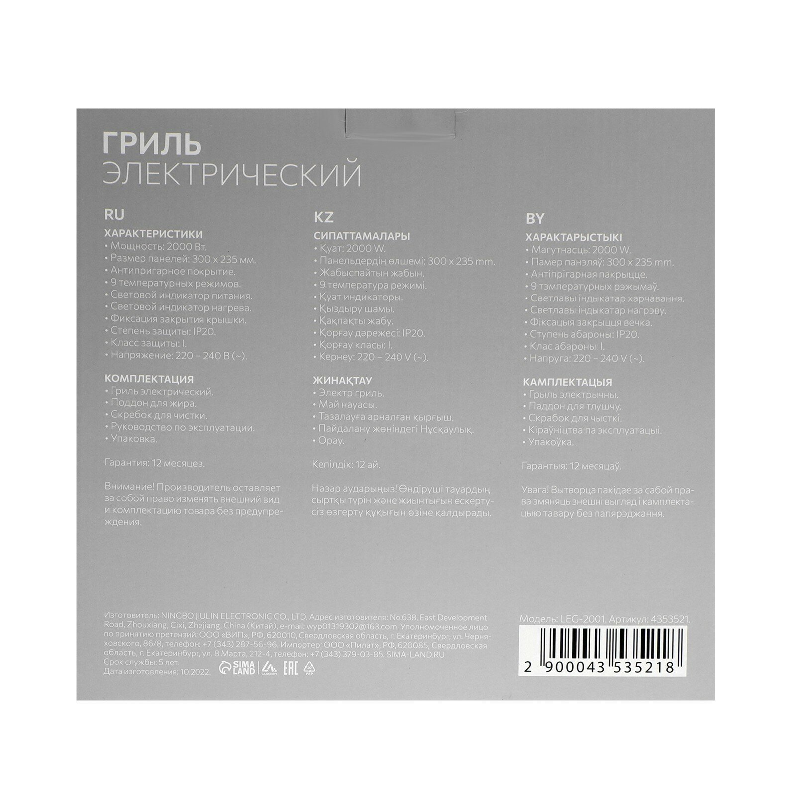 Электрогриль LUAZON HOME LEG-2001 4353521